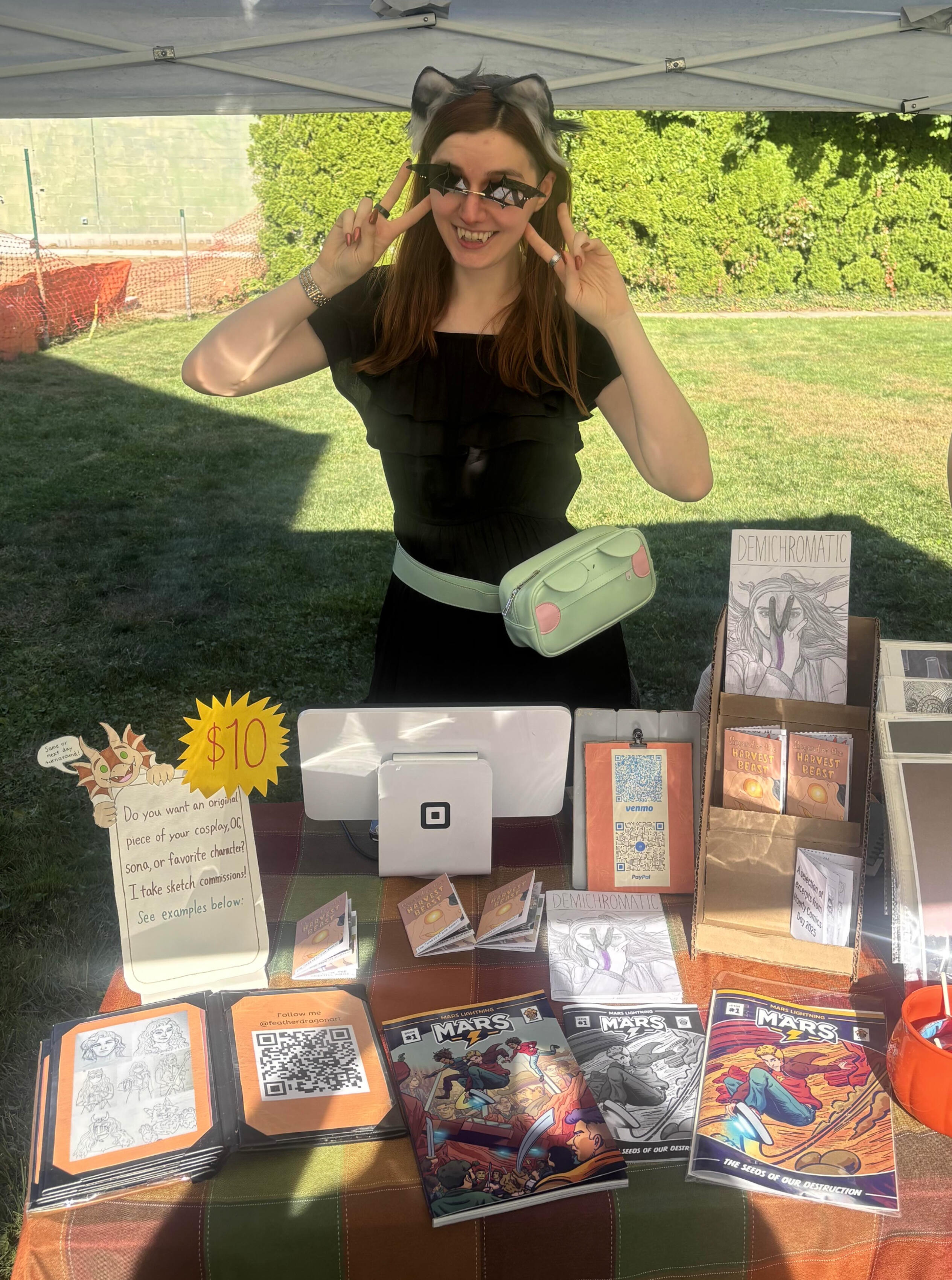 I am a writer and multidisciplinary artist born, raised, and based out of NJ.I've been a storyteller since I could speak, and an artist since I could hold a pencil. As a fierce daydreamer I wanted to share the fantastical worlds in my head with my loved ones. Whether that was through illustration, prose, or even becoming the characters themselves (through costuming and puppetry), I always sought after the way to best convey the tale I wanted to tell.I graduated with a B.A. in English; Creative Writing from Franklin & Marshall College in 2020 and have self-published most of my written work online, including my senior theses. I also host a bi-weekly Comics Bash every other Monday for the Comics Accountability Club, providing a space for other comics creatives to make progress on their projects.When I'm not drawing, writing, or sewing, I sing in a cover band with my Dad called MCB&J. You can learn more about where to hear us sing/ play here.If you have any inquiries/ comments/ want to say hi, you can contact me at [email protected]